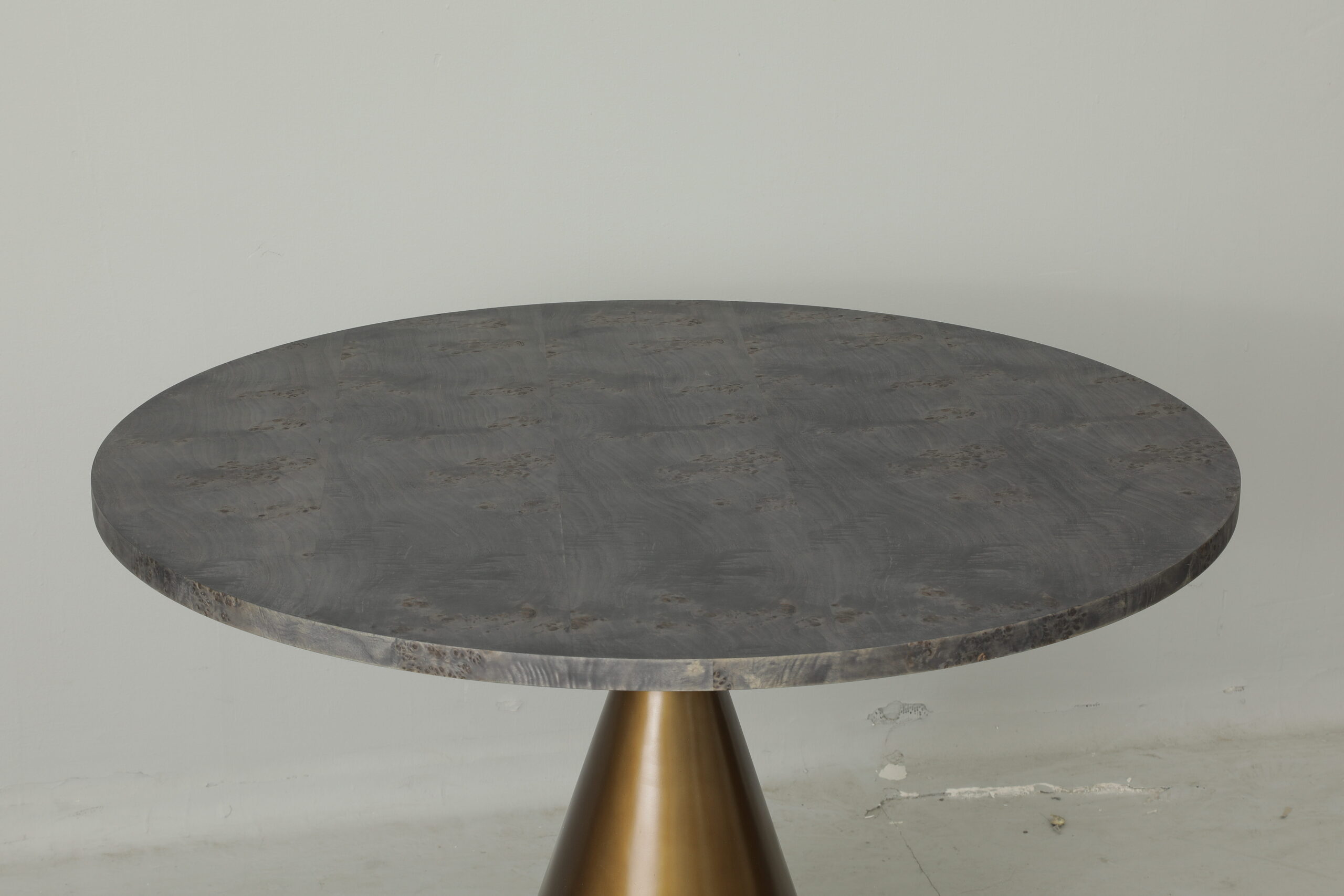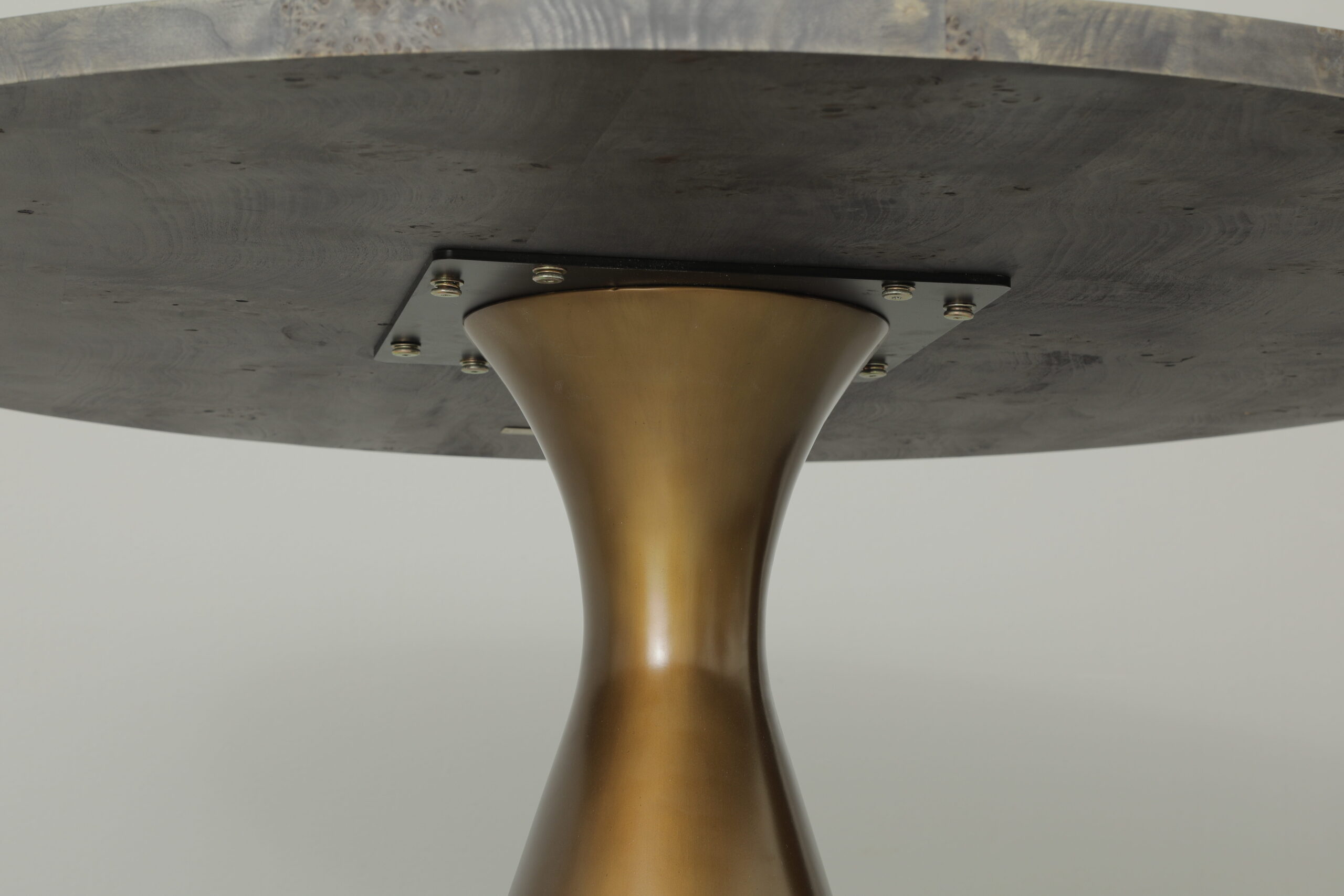 Finish: Mappa Burl Top with Finished Aged Brass Base