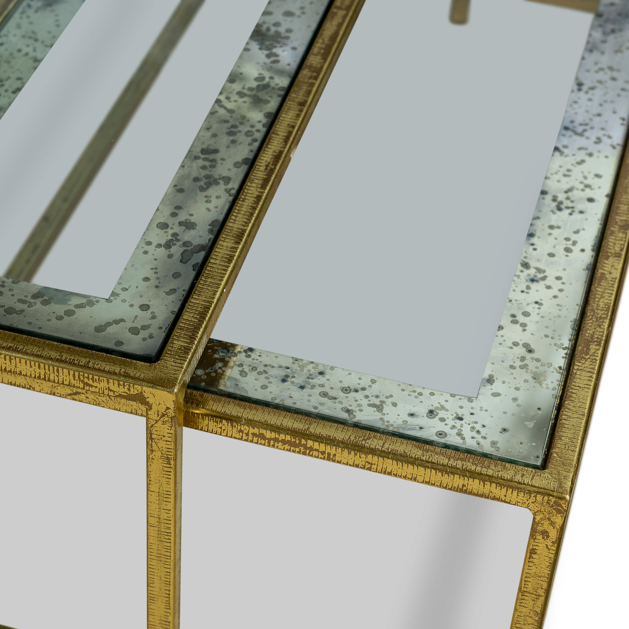 Finishes: Serrated Kings Gold with Aged Mirror Border Glass Inserts